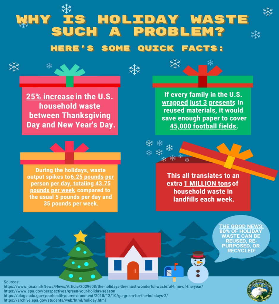The Recycling Outreach Team encourages you to use this holiday season to create new sustainable habits and traditions for your household that are useful throughout the year and help keep waste low! Like this blog? Share this blog along with your favorite eco-friendly tips with your friends and family to help get them started on their zero waste journey – because a cleaner, greener planet is something worth celebrating this season!
