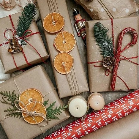 Finally, gift wrapping paper is a notorious culprit for increasing holiday waste. While most wrapping paper, gift bags, and tissue paper is recyclable (unless the paper is metallic or glittery) they can also be easily swapped out for other eco-friendly ways to reuse items you may already have – like kraft paper, old maps, or sheet music. You can even use fabric wrapping, or challenge yourself to make the wrapping part of the gift in some way, such as creating a gift basket, gift box, or useful storage container. And instead of ribbon or bows consider adorning your gifts with natural elements such as cinnamon sticks, dried fruit slices or pinecones.