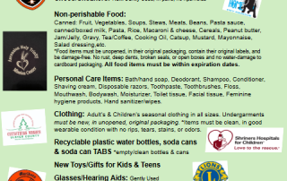 - Diapers (sizes 4,5,6 are in highest need) & wipes