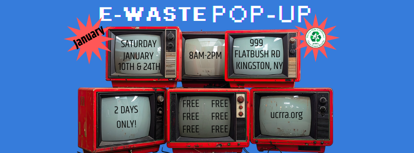 UCRRA 999 Flatbush Road, Kingston, NY, United StatesSaturday, January 10th, 2026 Saturday January 24th, 2026 8:00 AM - 2:00 PM UCRRA Kingston Facility 999 Flatbush Road, Kingston, NY 12401 The UCRRA will be hosting two, one-day only, FREE Electronics ..